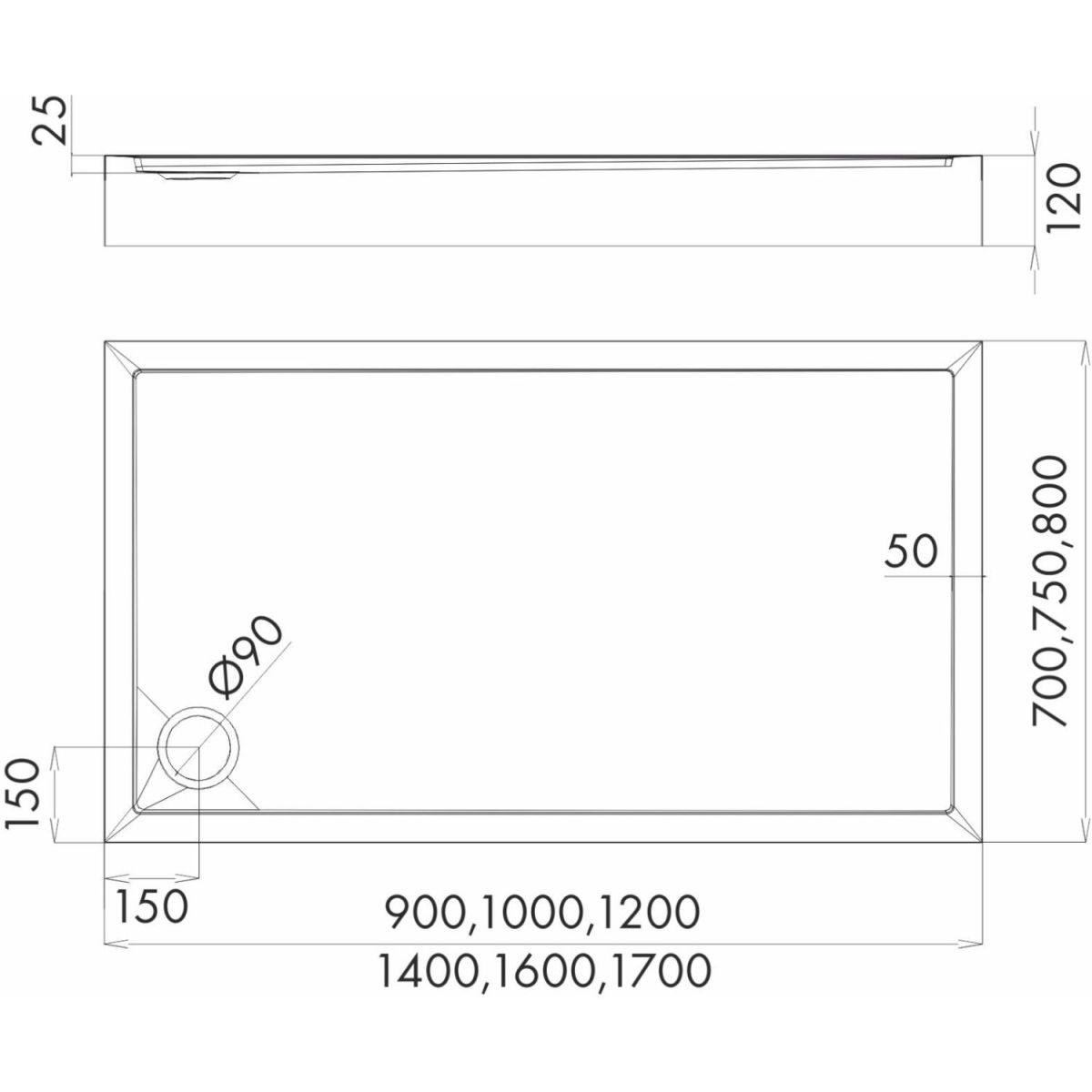 Schedpol Competia New receveur de douche rectangulaire 120x70 cm blanc 3.4666