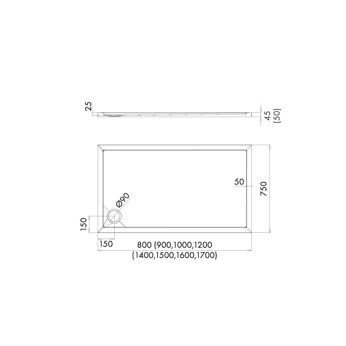 - diamètre de l'écoulement : Ø 90 mm