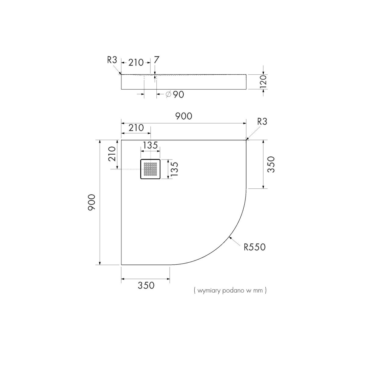 Schedpol New Horizons White Stone receveur de douche semi-circulaire 90x90 cm blanc 3.3304/B/ST-M2