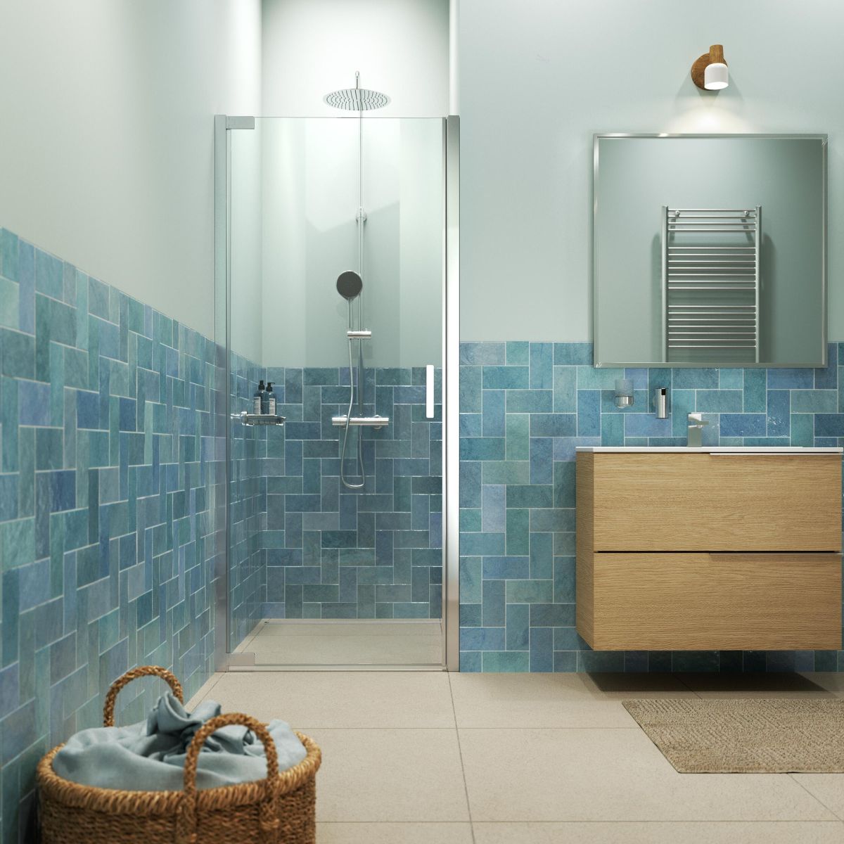 - Confort supplémentaire dans la douche : ce panneau en verre mesure 2 mètres de haut, de sorte que la chaleur reste plus longtemps dans la douche