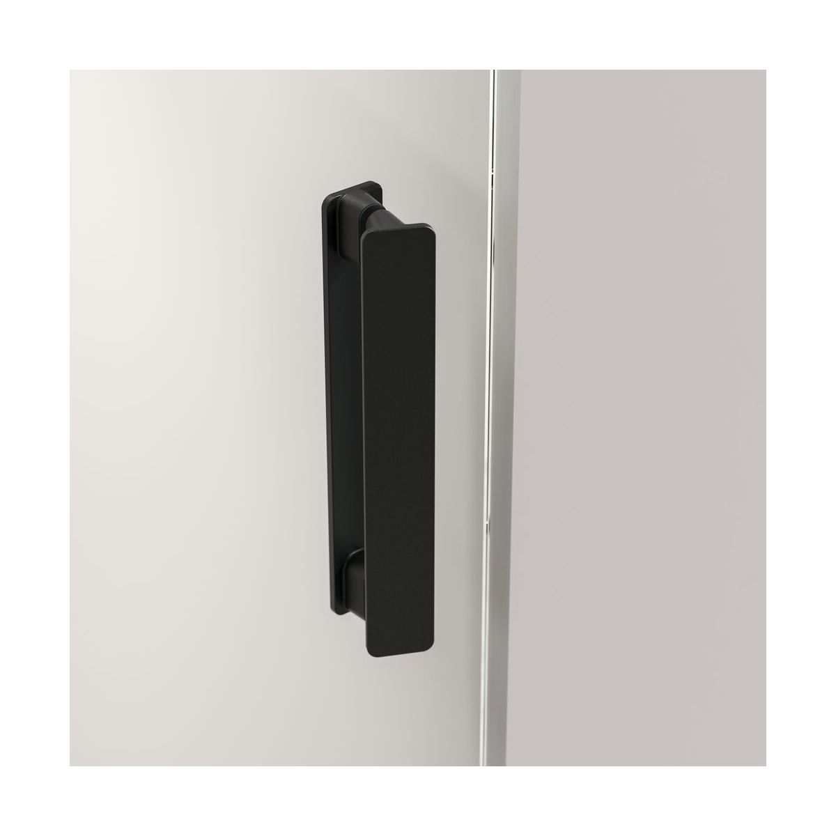 Découvrez une combinaison unique de style et de fonctionnalité avec une porte battante et une paroi latérale de la même gamme. La cabine de douche mesure 98 cm de large, ce qui lui permet de s'adapter à la plupart des bacs à douche de 100 cm de large ou d'être posée directement sur un sol carrelé. Les fixations en acier inoxydable de haute qualité assurent un raccordement plat au verre de sécurité de 8 mm d'épaisseur avec un revêtement anti-calcaire. Cela permet de garder le verre propre et de le sécher facilement après le bain. Qui n'en voudrait pas ? Les portes battantes peuvent être ouvertes vers l'intérieur ou l'extérieur et sont équipées d'un système de fermeture automatique pour une fermeture facile. Les charnières et la poignée sont en noir mat. Une finition audacieuse qui s'harmonise avec de nombreux styles de salles de bains.