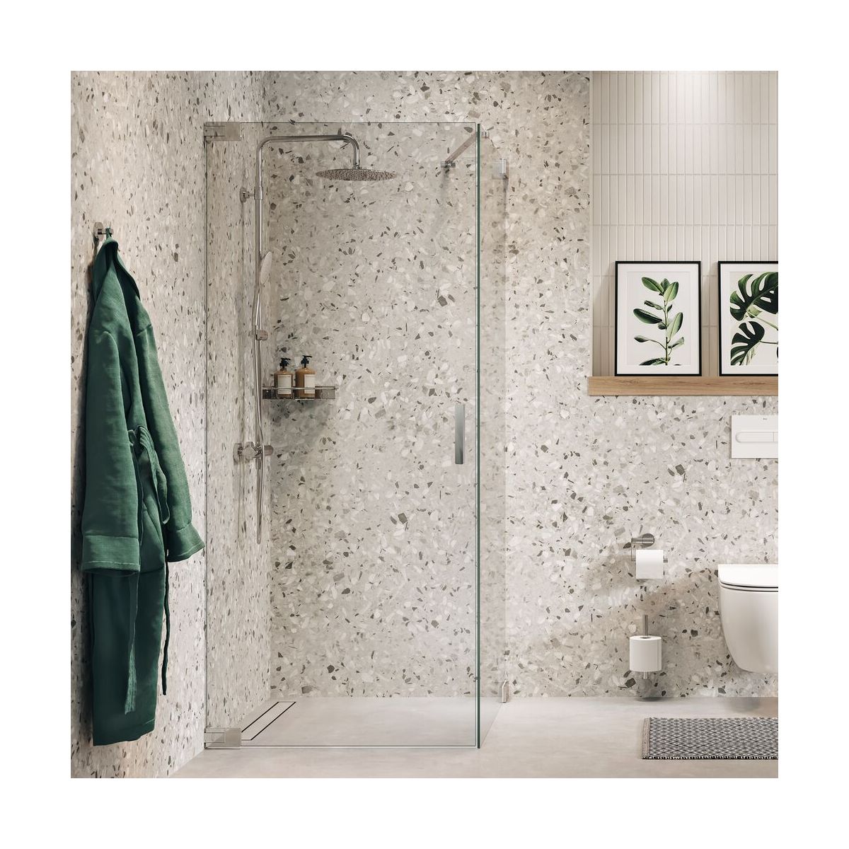 - Pour un plus grand confort dans la douche, ce panneau de verre a une hauteur de 2 mètres, de sorte que la chaleur reste plus longtemps dans la douche