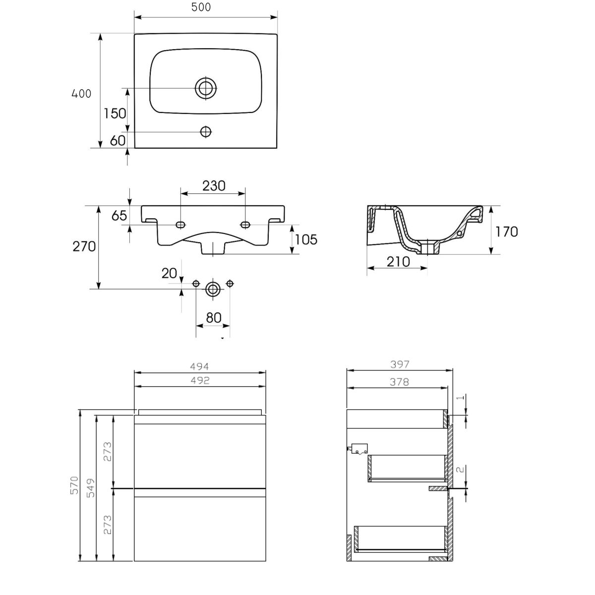 - moduo 50 meuble lavabo gris et Moduo 50 lavabo sont inclus