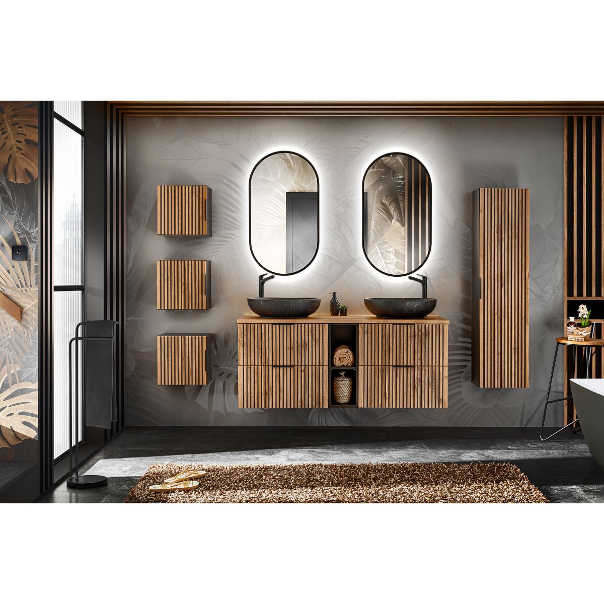 Cette collection séduit par ses couleurs et son style. Les nœuds prononcés du chêne Wotan associés à des rainures noires constituent une nouveauté sur le marché du meuble qui suscite un intérêt croissant. La collection comprend des meubles sous lavabo de différentes tailles, une colonne haute, des cubes et une étagère basse, ce qui la rend modulaire et permet de créer des ensembles adaptés aux salles de bains de toutes tailles. La collection Xilo n'est pas seulement synonyme de qualité et d'esthétique moderne, mais aussi de confort et de fonctionnalité. Les meubles sous lavabo peuvent être équipés de lavabos encastrés ou combinés avec des plans de travail et un lavabo à poser choisi parmi notre large gamme.
