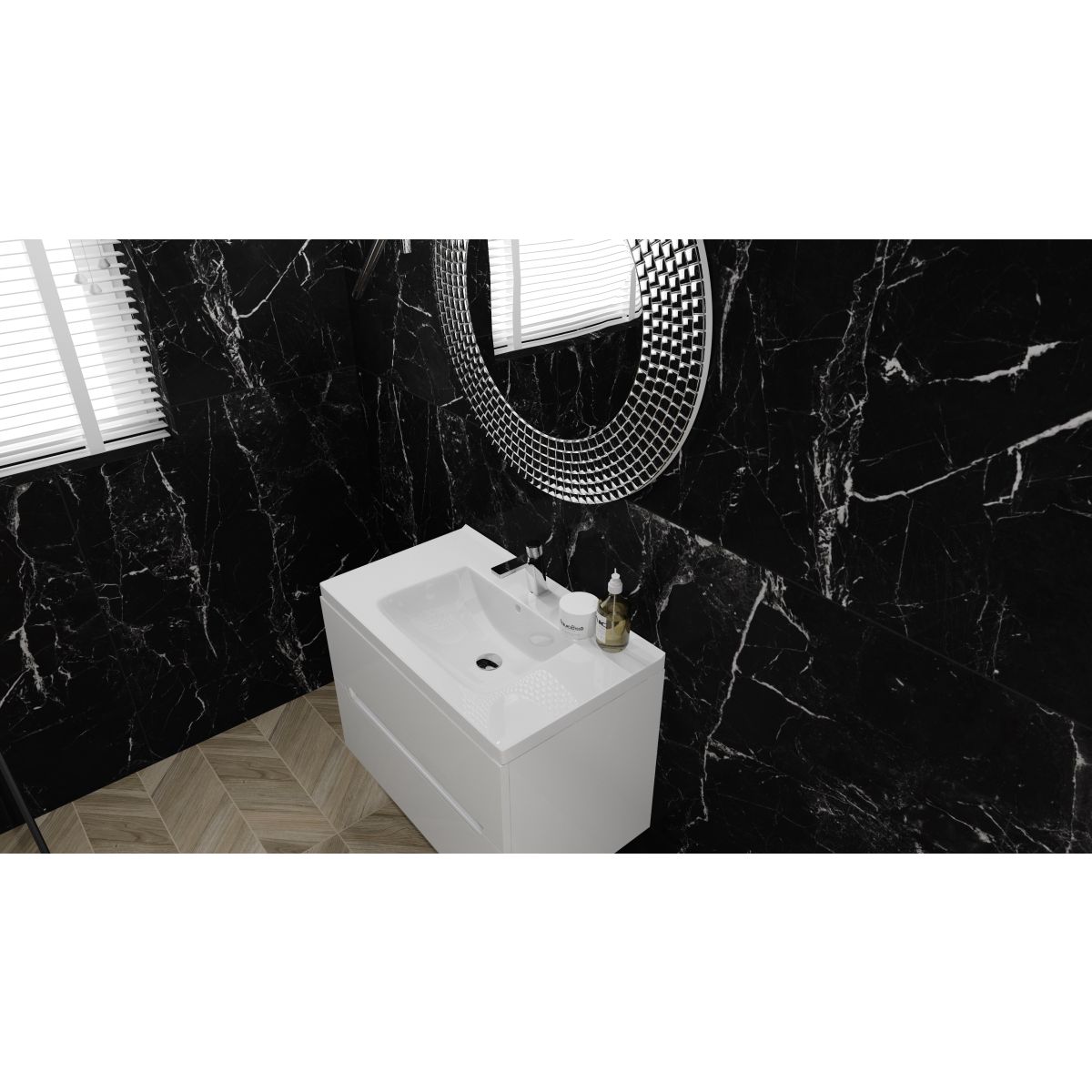 1. LaVita Kansas 80 cm meuble sous plan blanc brillant/noir