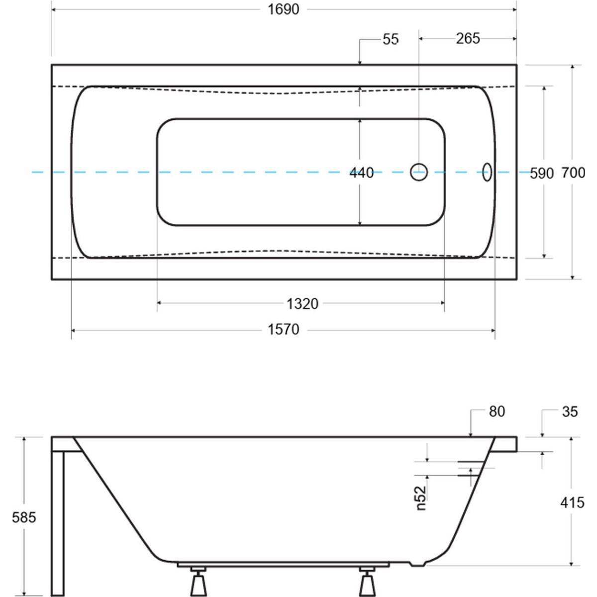 - côté le plus long (A) 170 cm