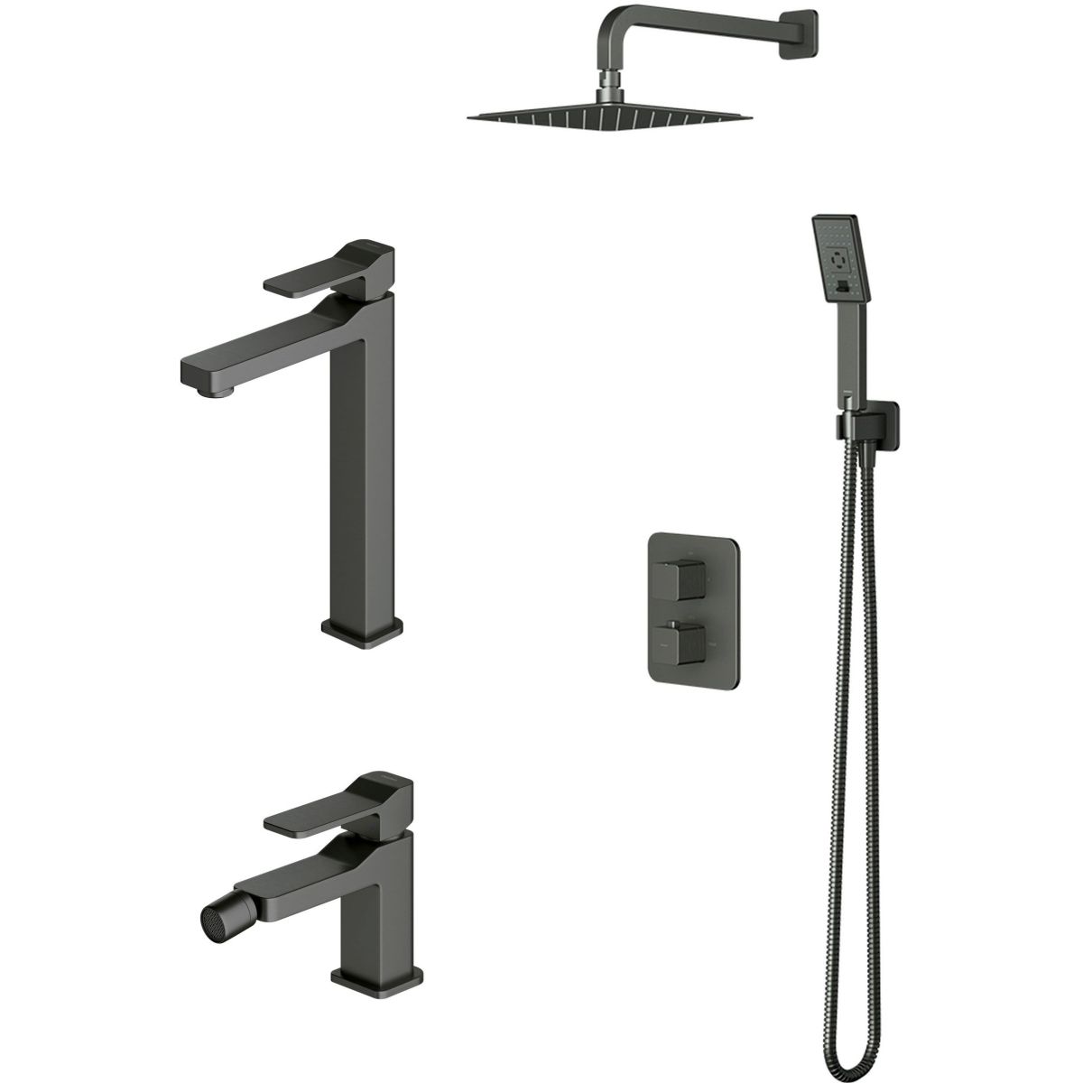 2. Omnires Slide set de douche thermostatique à encastrer avec douchette graphite