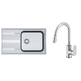- le mitigeur est idéal pour les éviers doubles ; la douchette extractible permet d'utiliser les deux compartiments de l'évier