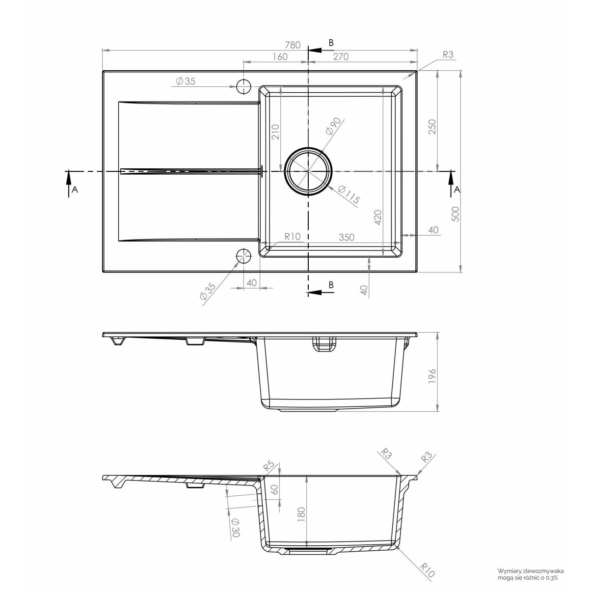 - design moderne, égouttoir lisse, siphon de trop-plein Flex SPACE inclus