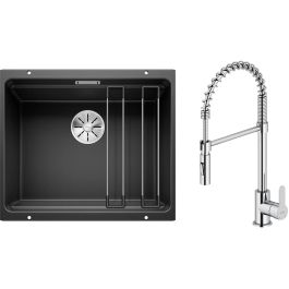 - le matériau (Silgranit) est composé à 80 % de granit naturel combiné à de la céramique, de l'acrylique et des pigments colorés, ce qui lui confère des propriétés uniques et un bel aspect
