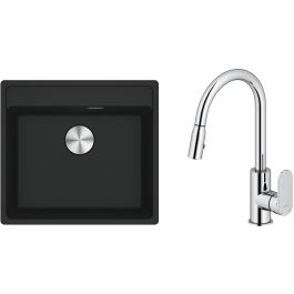 - le mitigeur est idéal pour les éviers doubles ; la douchette extractible permet d'utiliser les deux compartiments de l'évier