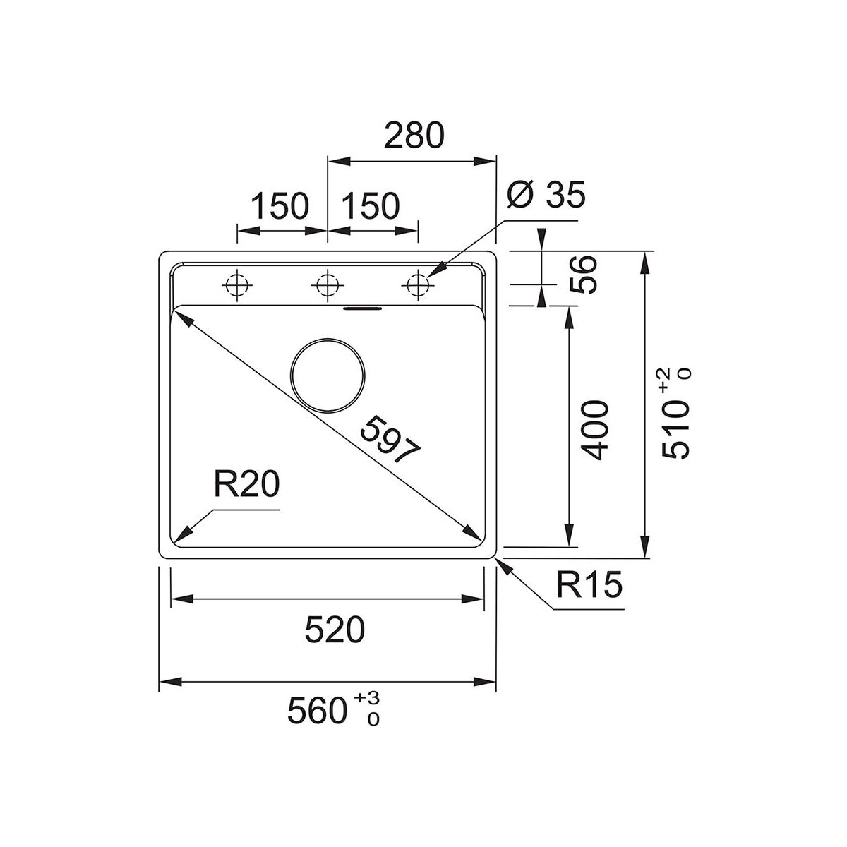 - épaisseur recommandée du plan de travail min. 12 mm