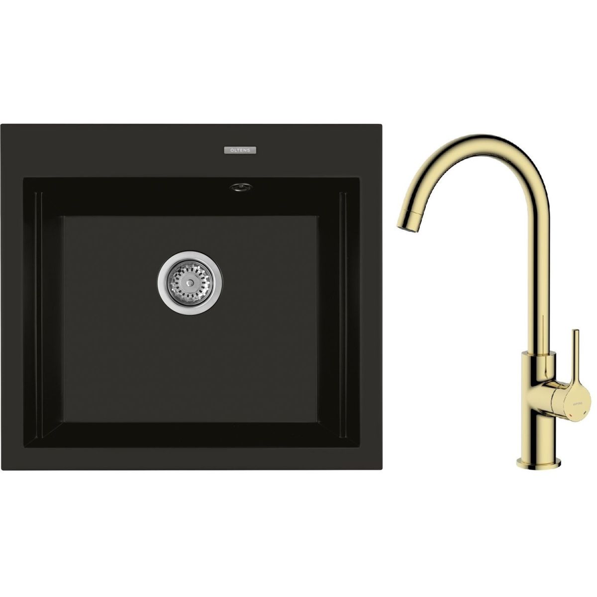 1. Évier en granit Oltens Gravan à 1 bac 57 x 51,5 cm noir mat 72000300