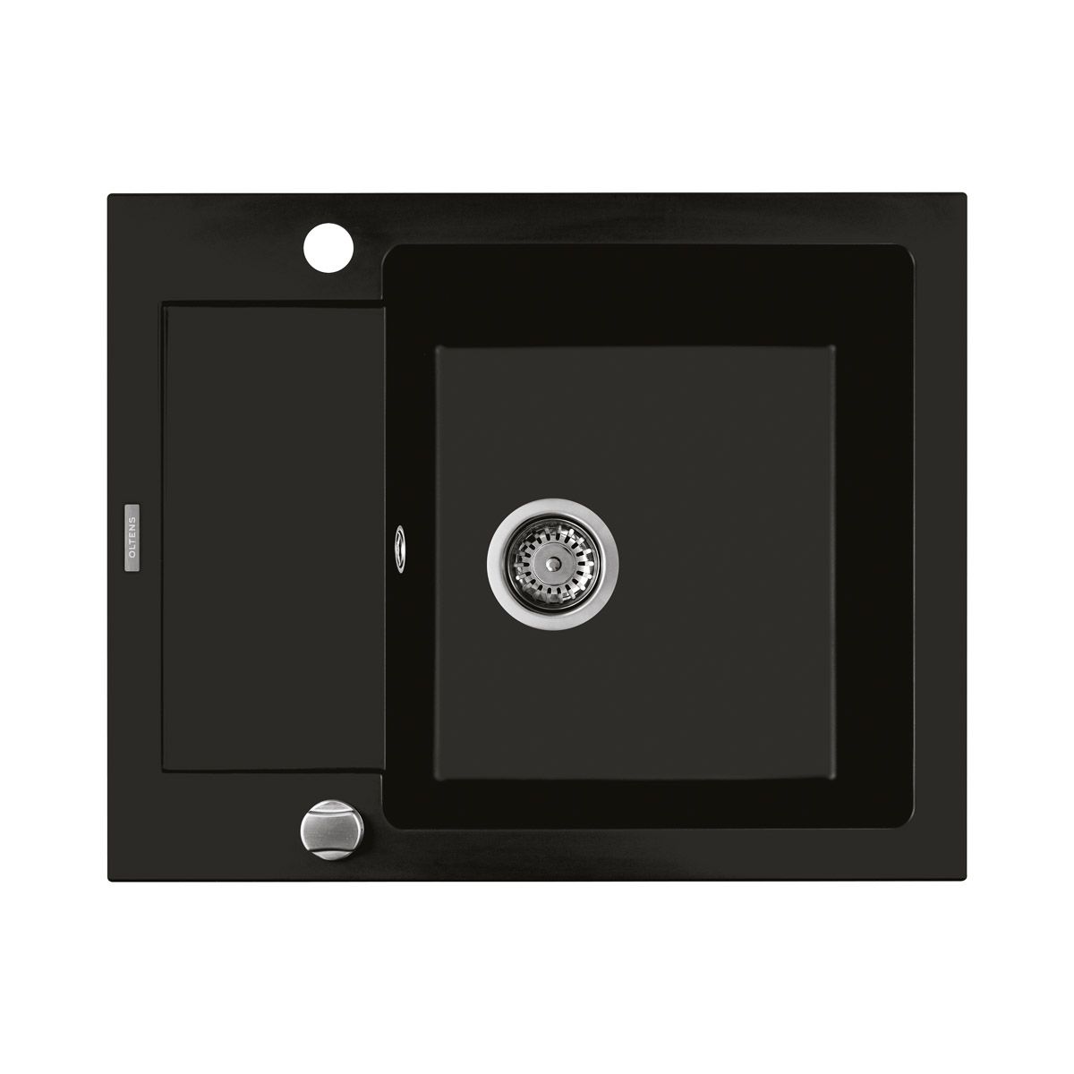 1. Oltens Gravan évier en granit 1 bac avec égouttoir court 62x50 cm noir mat 72102300