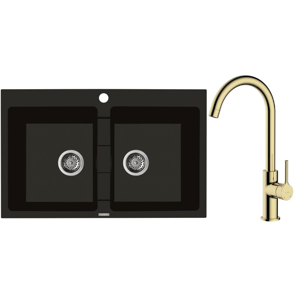 1. Oltens Gravan évier 2 cuves en granit 78x50 cm noir mat 72400300