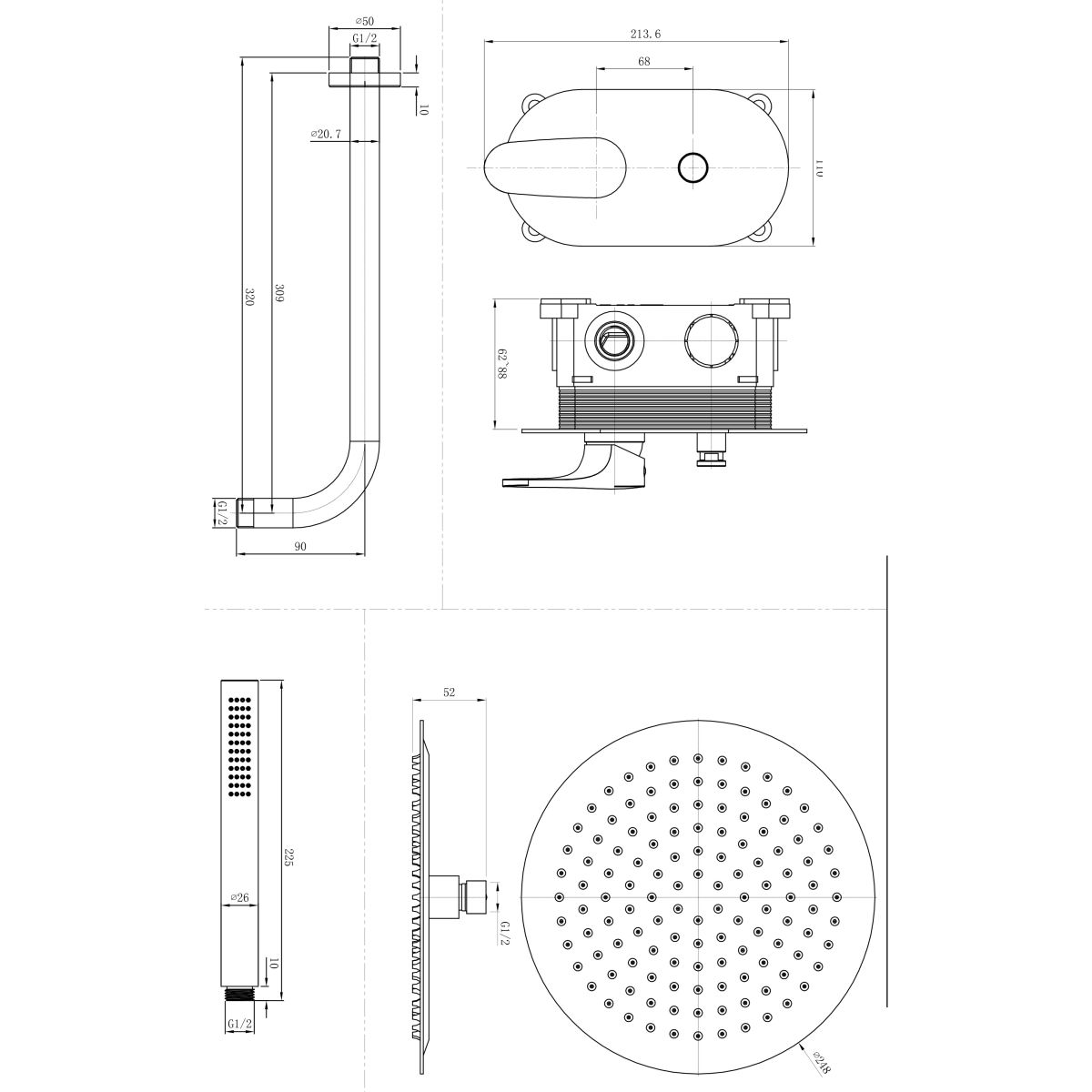 L'ensemble comprend : robinet (S951-313), ensemble de douche avec raccord d'angle (S951-708), bec de baignoire (S951-556). Les éléments de l'ensemble sont emballés séparément.