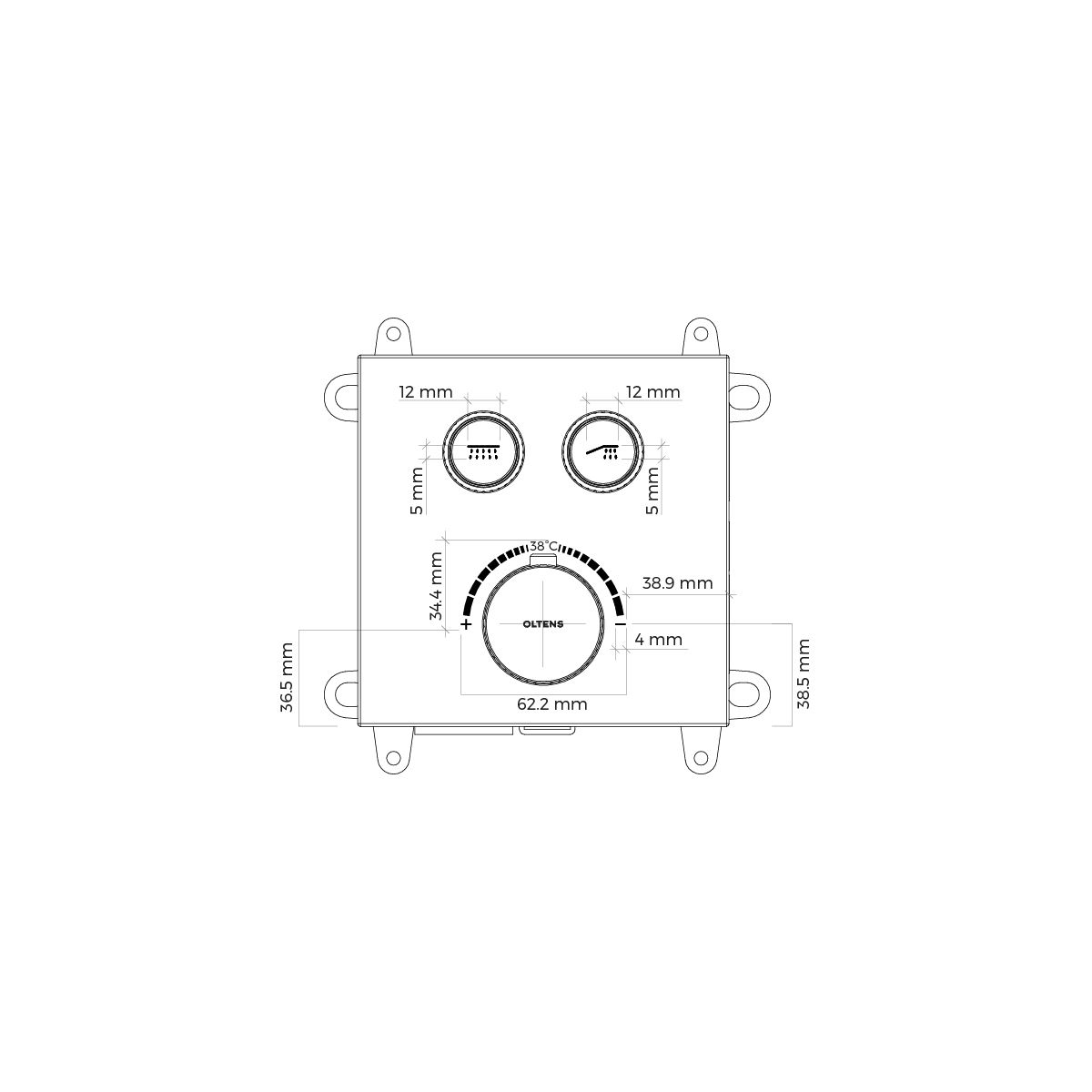 Le mitigeur thermostatique encastré Onega de la marque Oltens dispose de 2 sorties d'eau commandées par des boutons fonctionnels. Les boutons ont également une fonction supplémentaire de contrôle du débit d'eau, ce qui vous permet de réduire votre consommation d'eau. Les utilisateurs peuvent choisir l'effet souhaité sous la douche en appuyant simplement sur le bouton de commande et en augmentant/diminuant le débit d'eau. En appuyant sur les deux boutons, vous pouvez profiter simultanément des deux fonctions de la douche (par exemple, la douche à effet pluie et la douchette). Grâce à la tête thermostatique Sedal, les utilisateurs peuvent profiter d'une douche à température constante. La série de robinets Onega propose des caches avant ronds et carrés que l'utilisateur peut choisir en fonction de la décoration de sa salle de bains.