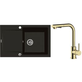 1.oltens Gravan évier en granit 1 bac avec égouttoir court 79x50 cm noir mat 72100300