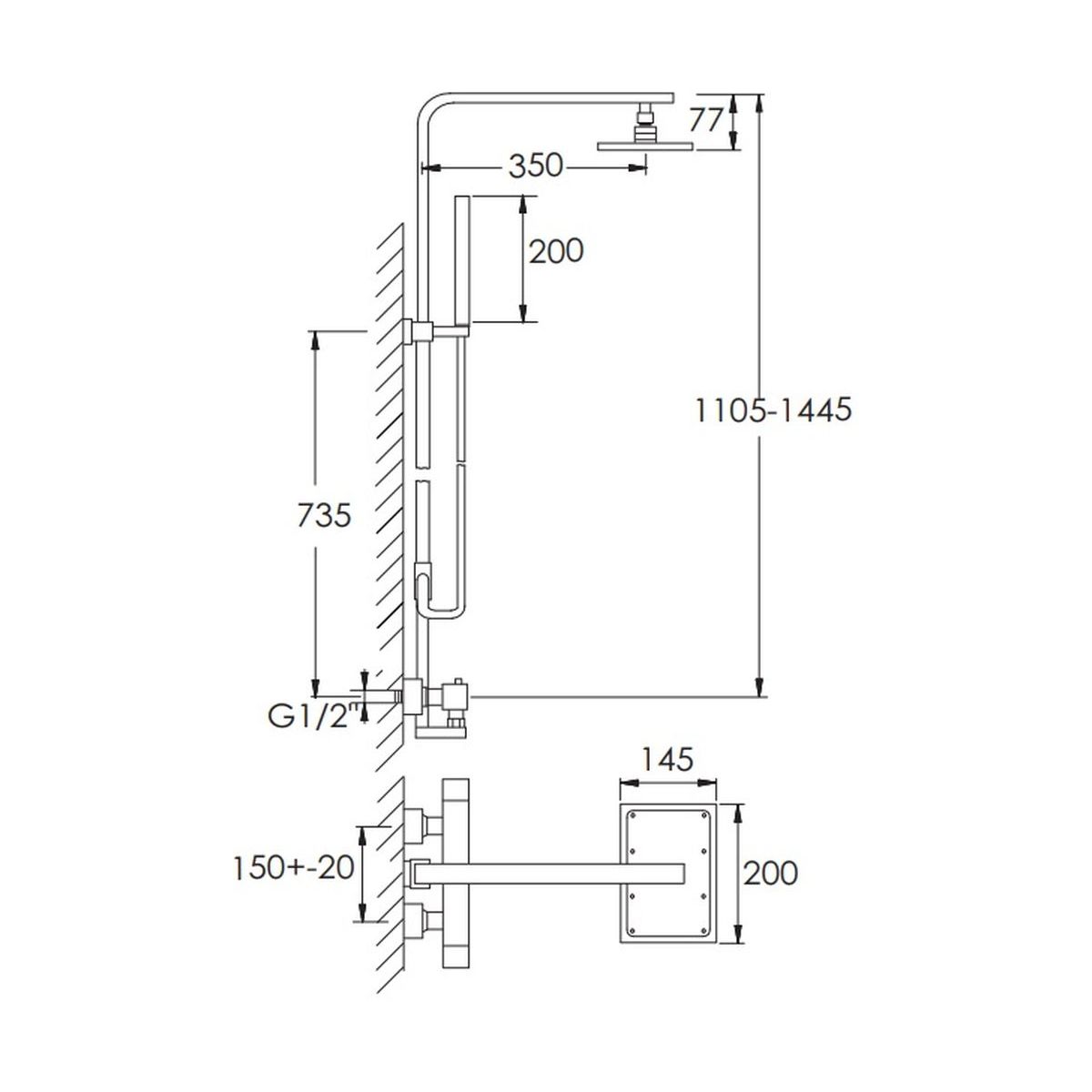 - Inclus: robinet avec inverseur, pommeau de douche à effet de pluie, pommeau de douche, tuyau flexible de douche, barre de douche