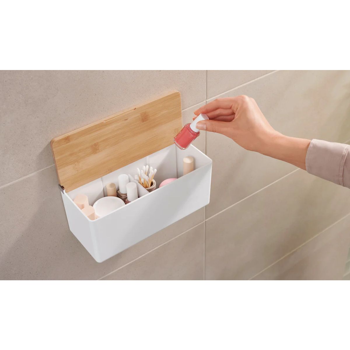 - boîte de rangement à fixer avec tesa® Powerstrips Waterproof (solution de montage auto-adhésive qui ne nécessite pas d'être fixée à l'intérieur de la boîte de rangement).