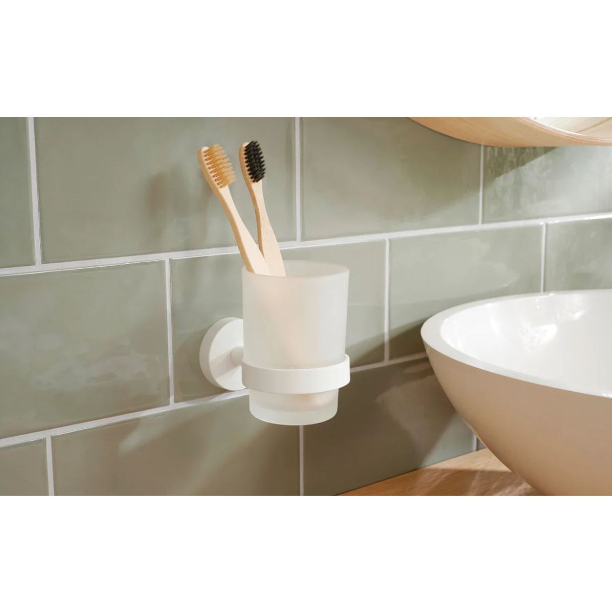 - porte-brosse à dents avec porte-verre, avec technologie tesa® Power.Kit (solution de montage auto-adhésive, pas de perçage nécessaire)