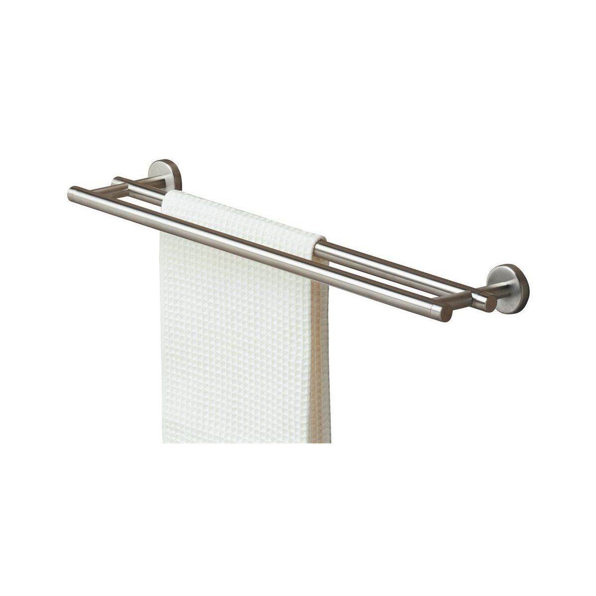 Porte-serviettes double Tiger Boston en acier inoxydable brossé. Le porte-serviettes peut être facilement fixé au mur, les pièces de montage dissimulées (incluses) garantissent une apparence élégante. La gamme Boston comprend une large sélection d'autres accessoires de salle de bains et de toilettes qui créent un ensemble joliment assorti.
