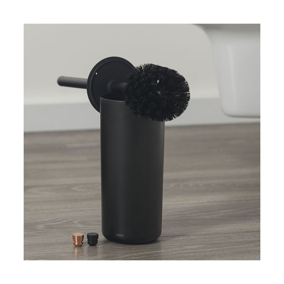 La brosse de toilette autoportante Tiger Urban en finition noire mate est équipée de trois embouts interchangeables. En noir, cuivre ou gris, ces pièces décoratives ajoutent une touche de couleur subtile à votre salle de bains et s'intègrent parfaitement au style de l'ensemble. La gamme Tiger Urban comprend une large sélection d'autres accessoires de salle de bains et de toilettes qui forment un ensemble magnifiquement coordonné.