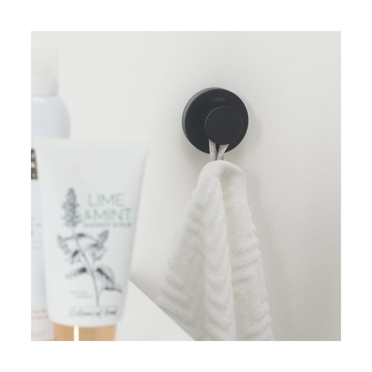 Le crochet peut également être fixé à l'aide du TigerFix type 1, un système de colle breveté qui permet de fixer rapidement et facilement des accessoires sur une surface lisse et dure. Vous n'avez pas besoin de percer et vous pouvez facilement retirer les accessoires sans laisser de traces sur la surface de montage.
