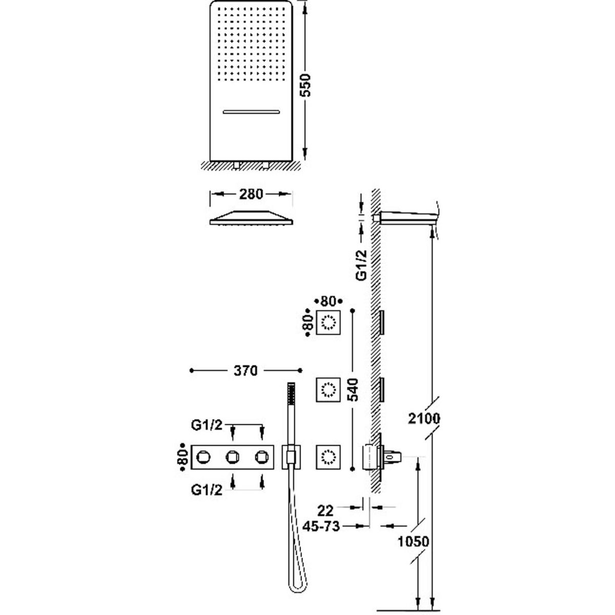 - dimensions de la douchette : 28x55 cm