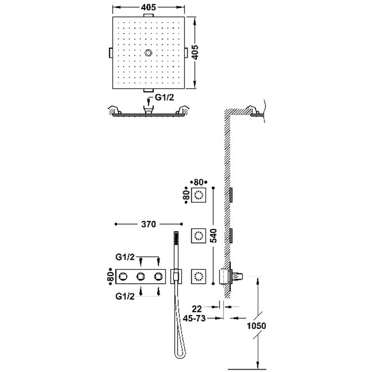 - dimensions de la douche de tête : 40,5x40,5 cm