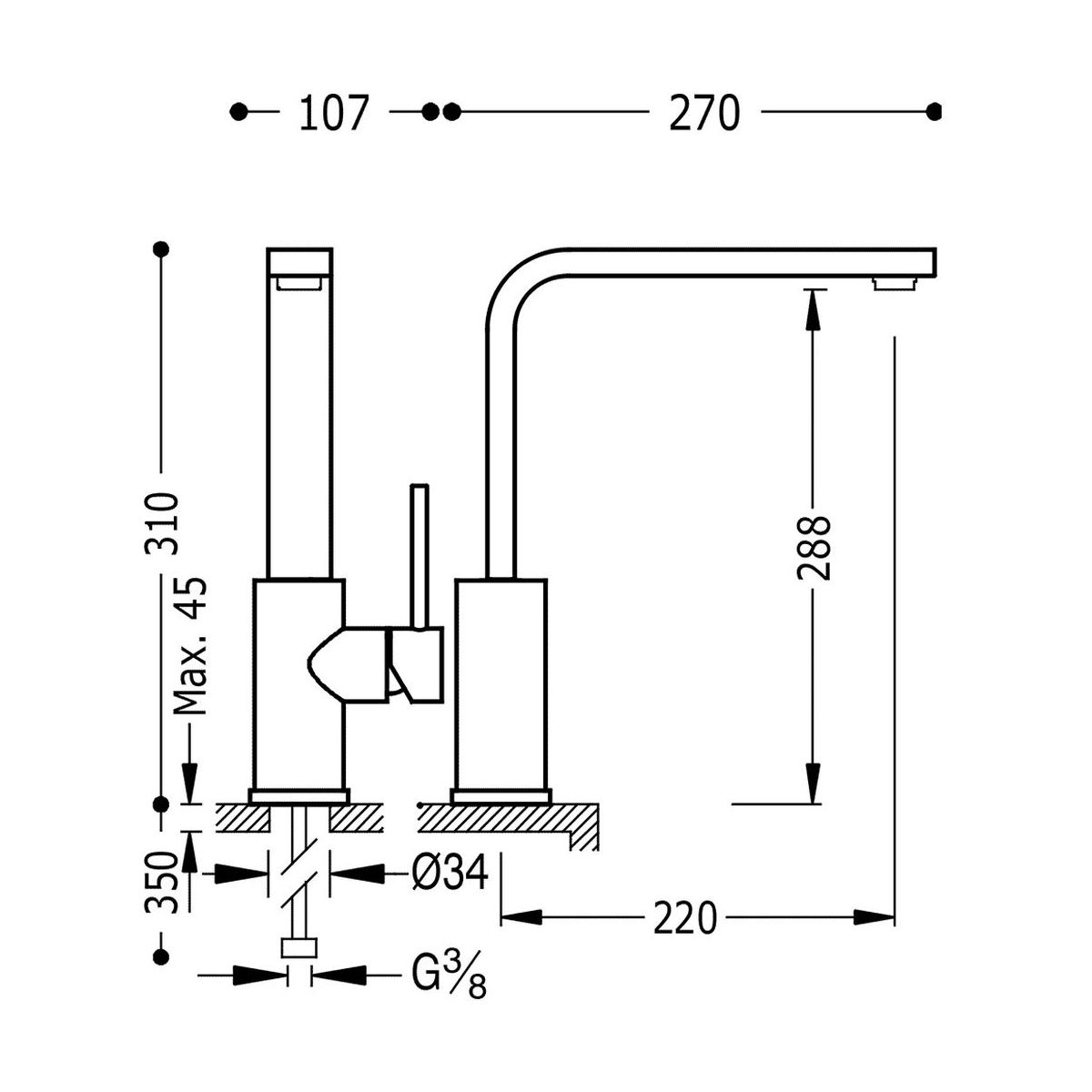 - hauteur du mitigeur : 31 cm