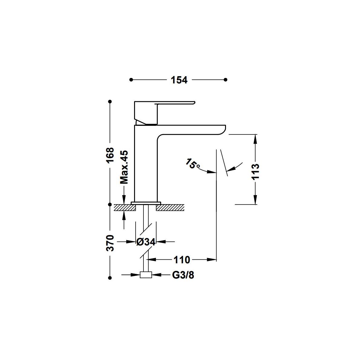 - hauteur du robinet : 16,7 cm