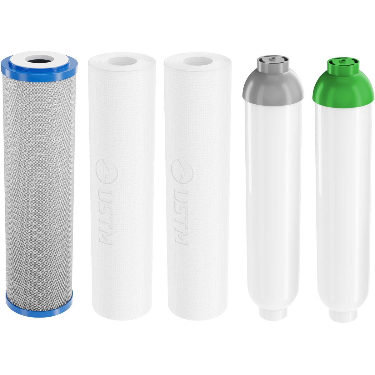 Jeu complet de cartouches de remplacement pour le système d'osmose inverse RO6 USTM L-MIN, assurant une filtration efficace et une excellente qualité de l'eau. Le remplacement régulier des cartouches garantit un fonctionnement optimal du système et une eau propre et saine, sans impuretés.