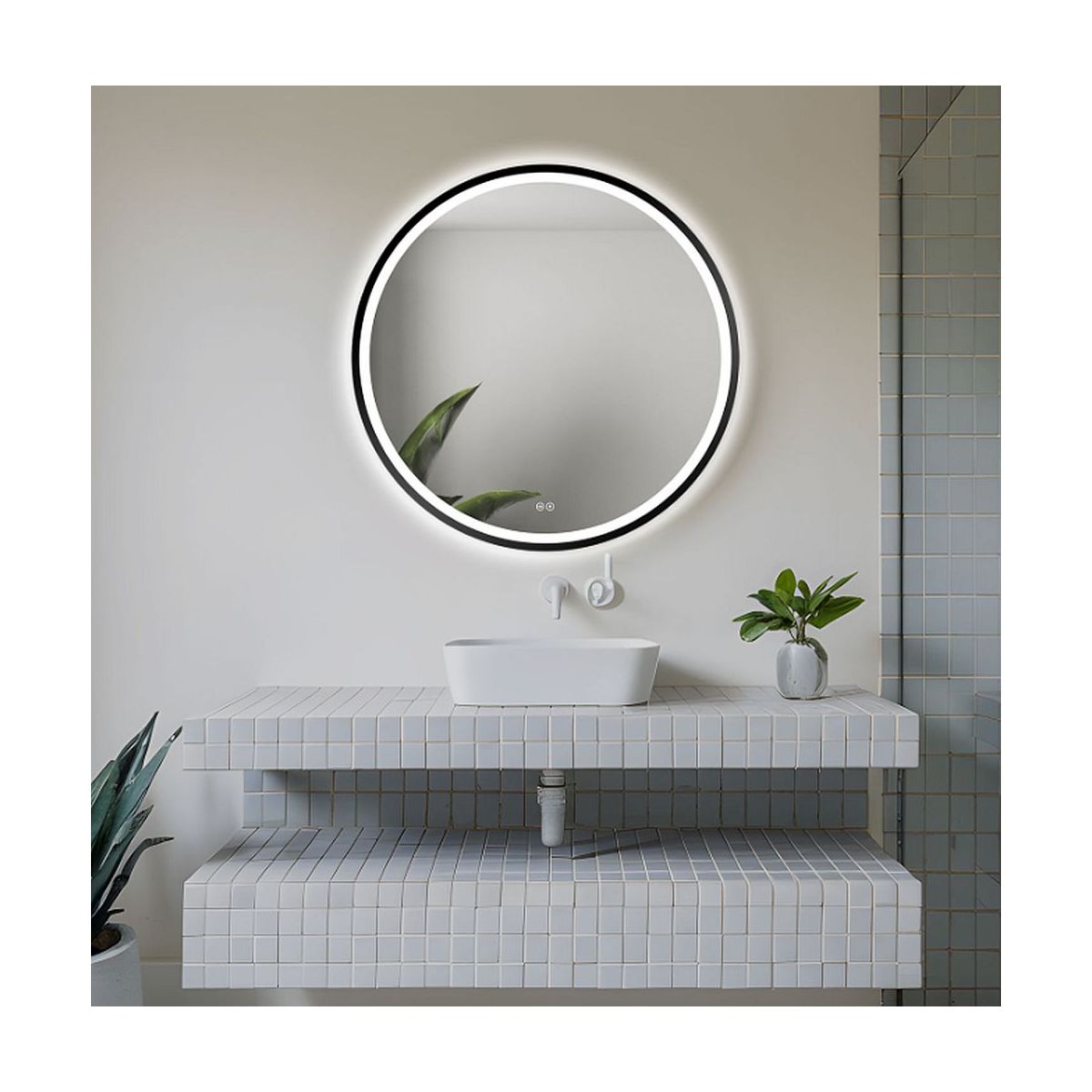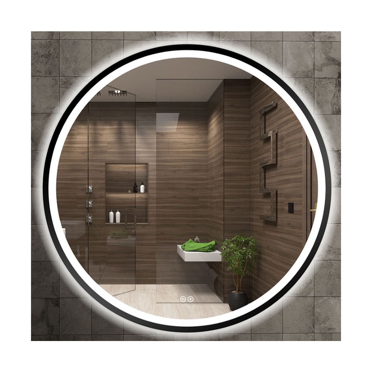 Venti Orion Black miroir 60x60 cm circulaire avec éclairage noir 5905951180342
