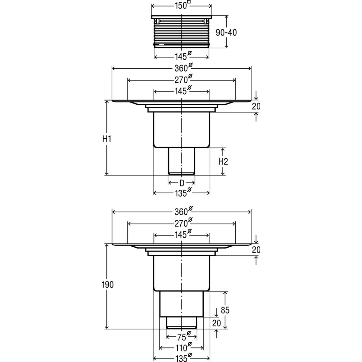 - capuchon pivotant réglable en hauteur 150x150 mm