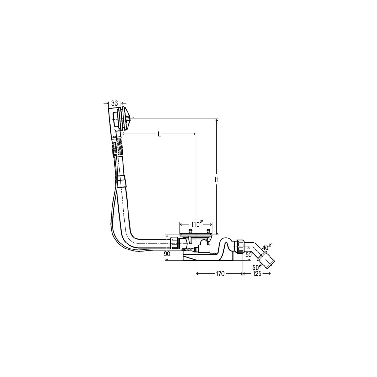 - pour baignoires avec trou d'évacuation Ø 90 mm
