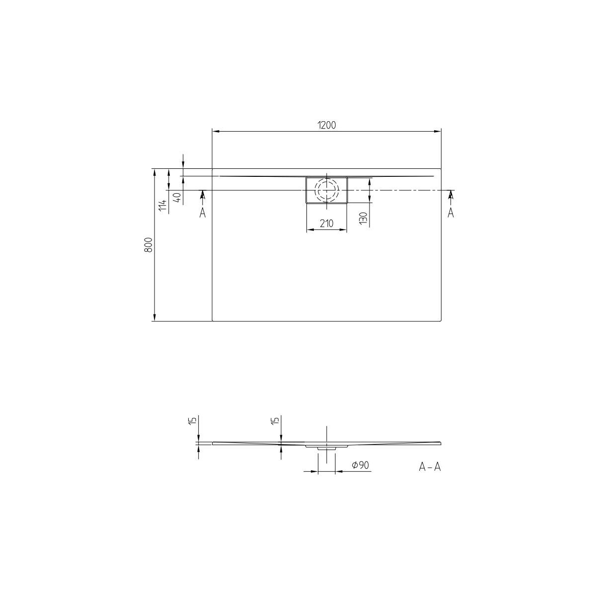 - diamètre de l'écoulement : 90 mm