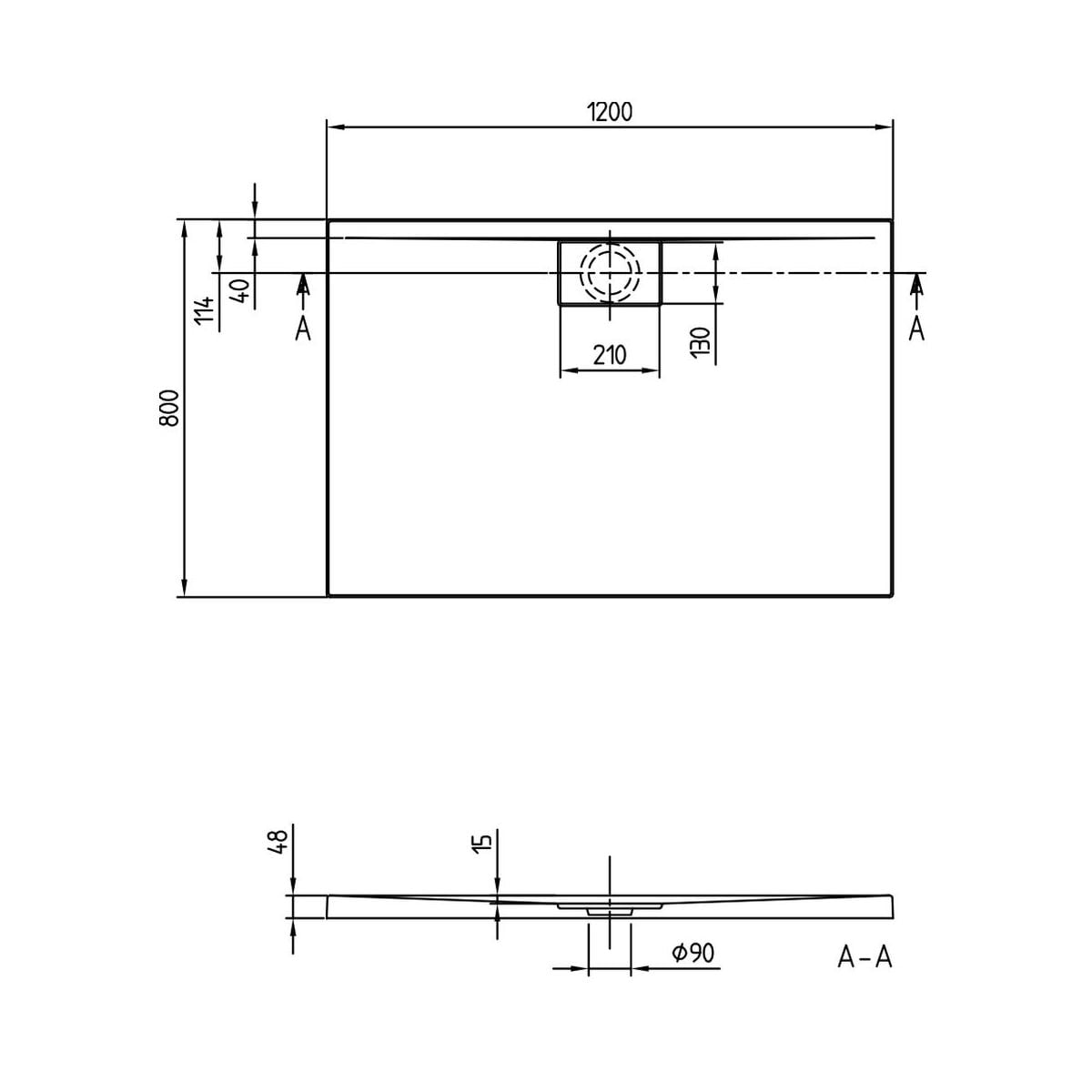 - diamètre de l'écoulement : 90 mm
