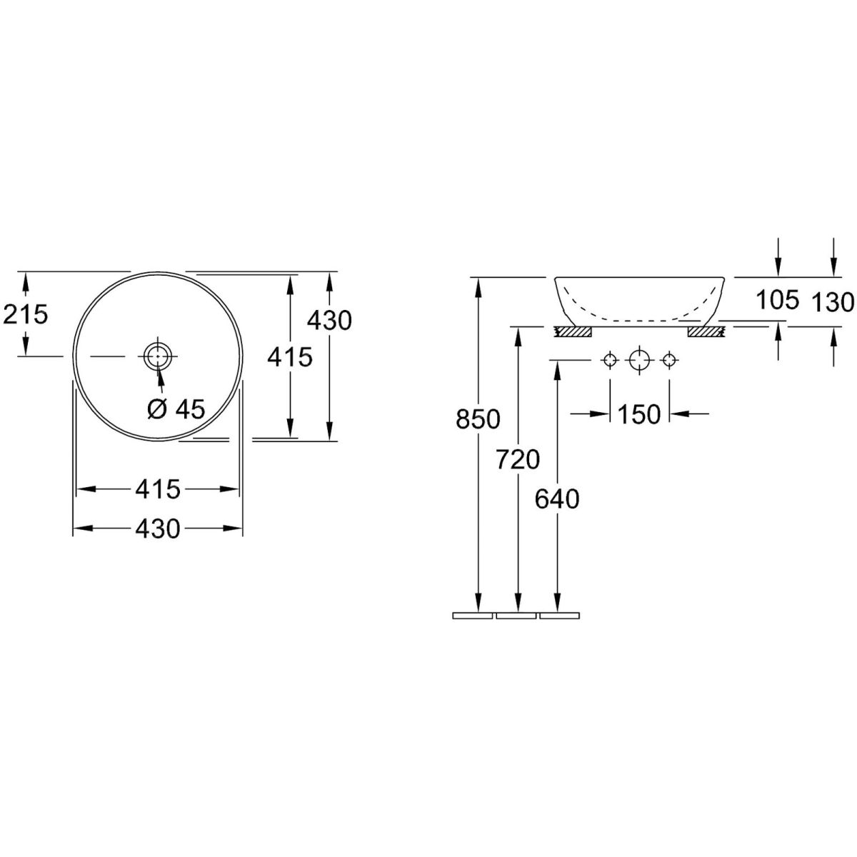 - dimensions de la vasque : Ø 41,5 cm