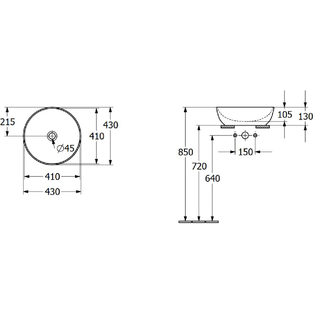 - dimensions extérieures : Ø 43 cm