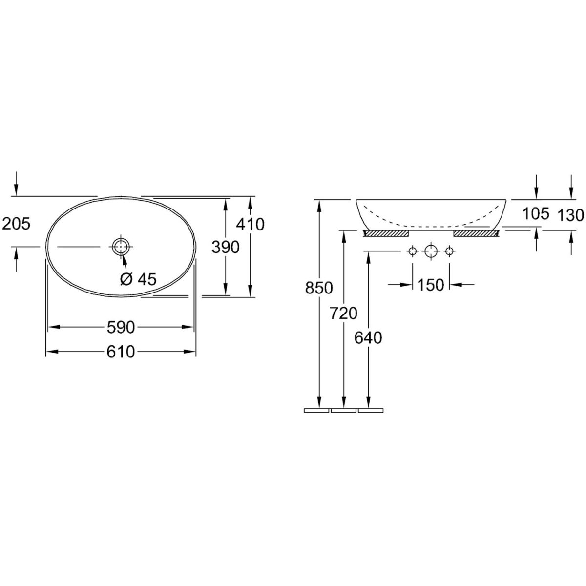 - sans trou pour le robinet