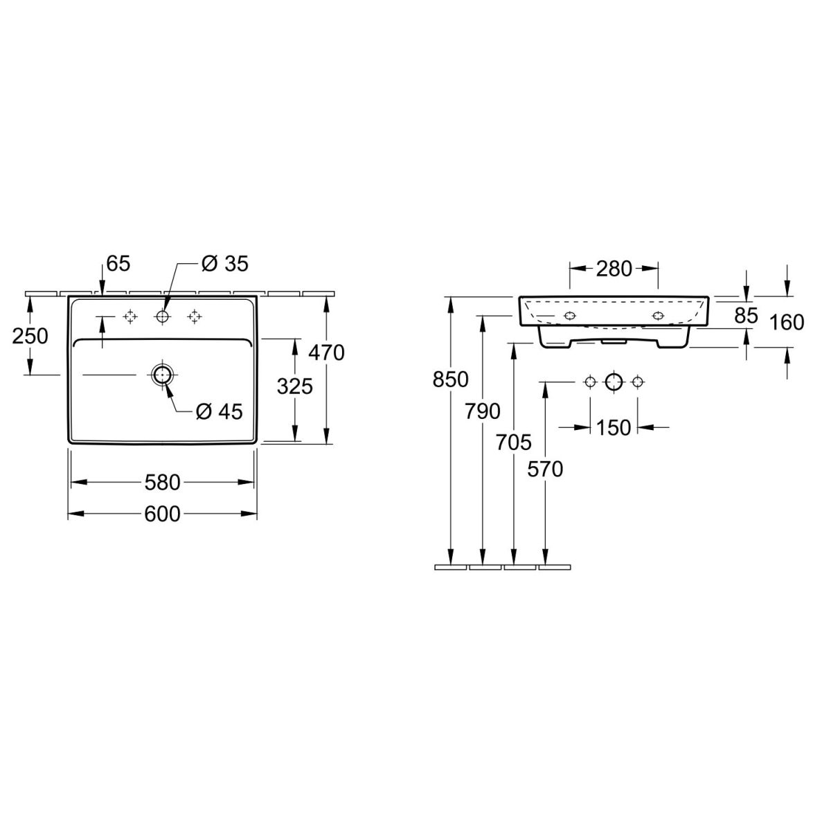 Villeroy & Boch Collaro lavabo 60x47 cm rectangulaire classique-de meuble blanc 4A3363R1