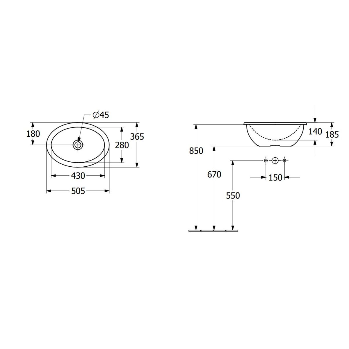 - sans trou de robinetterie