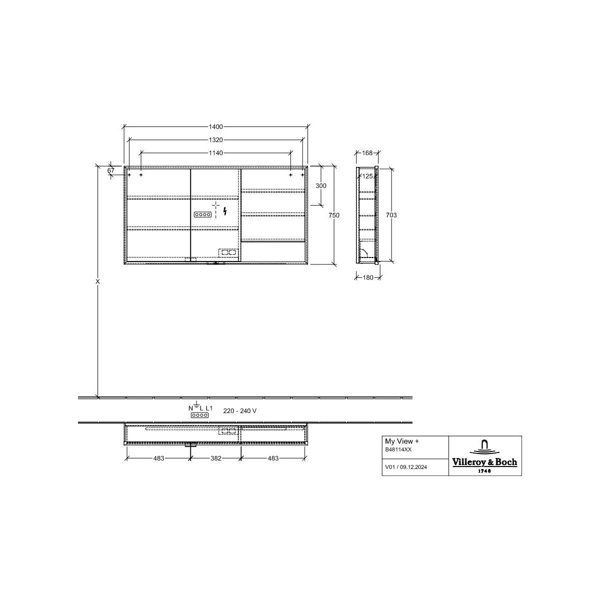 Villeroy & Boch My View+ armoire 140x16.8x75 cm avec miroir noir-chêne B48114VJ