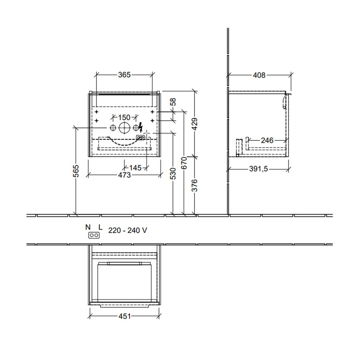 - Type: sous-lavabo suspendu