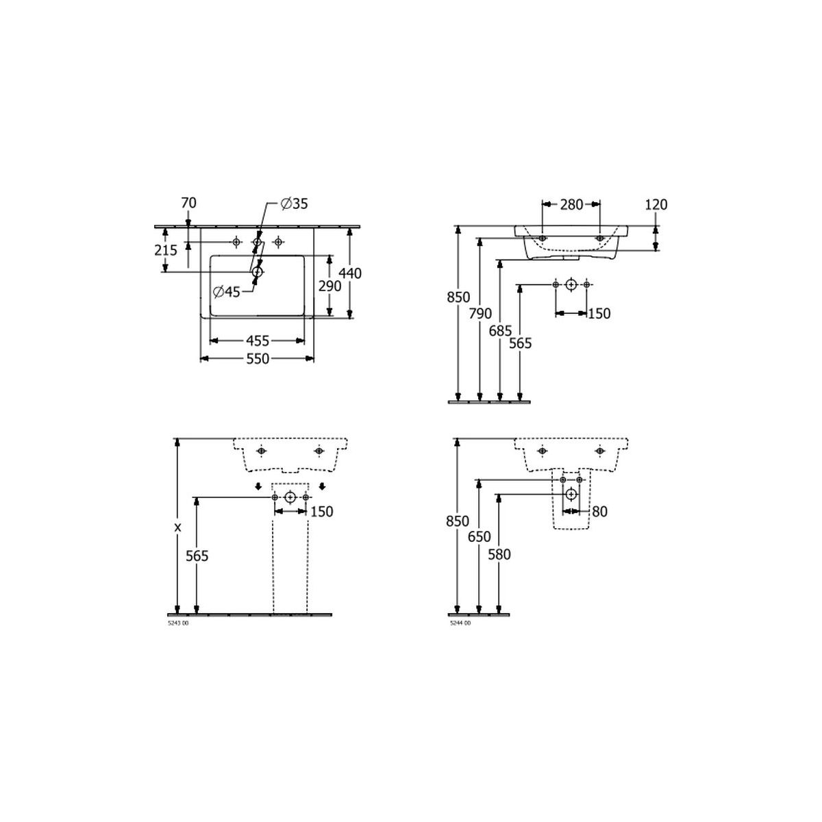 Villeroy & Boch Subway 3.0 lavabo 55x44 cm rectangulaire classique blanc 4A7055R1