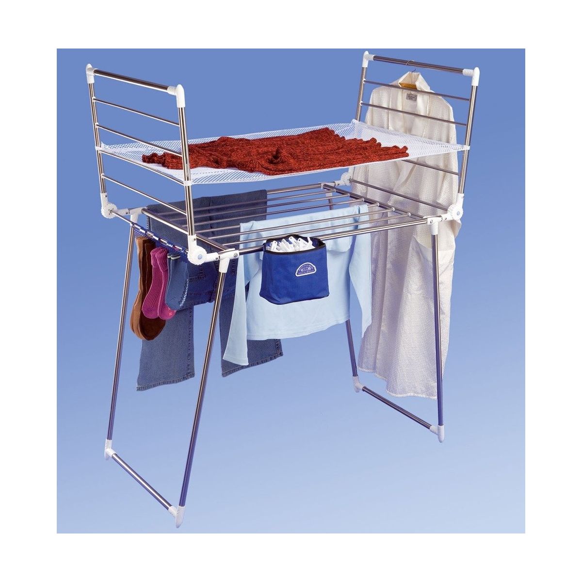 - 7 crochets, 24 supports avec pochette pratique et filet de séchage inclus