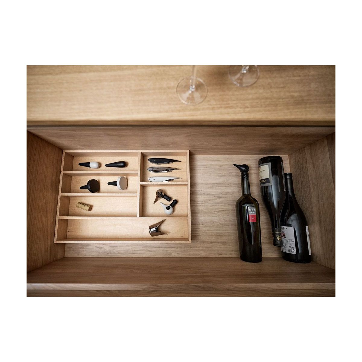 - il est équipé d'un coupe-capsule et d'un ouvre-film intégrés, et son bras articulé permet d'ouvrir la bouteille en deux étapes sans forcer