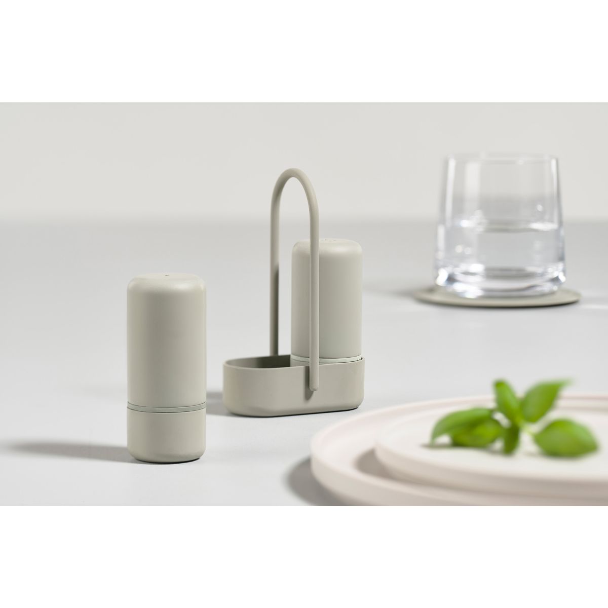 - Le set se compose de deux récipients séparés : l'un destiné au sel, l'autre au poivre